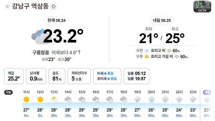 오늘은 저녁부터 비가 오네요. 그냥 시원하게만 오고 너무 많이는 오지 않았으면 좋겠습니다.