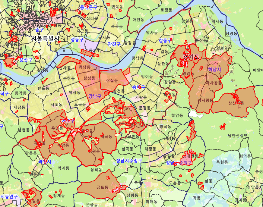 강남구나 대치쪽에 대고, "토지거래계약에 관한 허가구역을 체크해줍니다. .