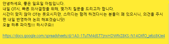 스터디가 끝난 다음날 투표를 하고, 10분정도의 선생님들이 함께 하기로 했습니다.