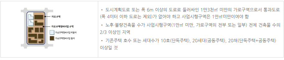 | 가로주택정비사업 | 자율주택정비사업 | |