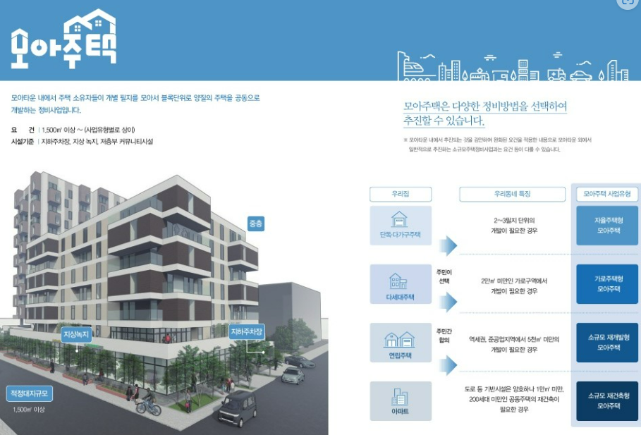 (그래서 자율주택정비사업에서 모아주택 정비 사업을 언급하고 있습니다)