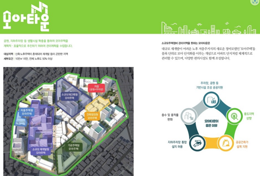 (그래서 자율주택정비사업에서 모아주택 정비 사업을 언급하고 있습니다)