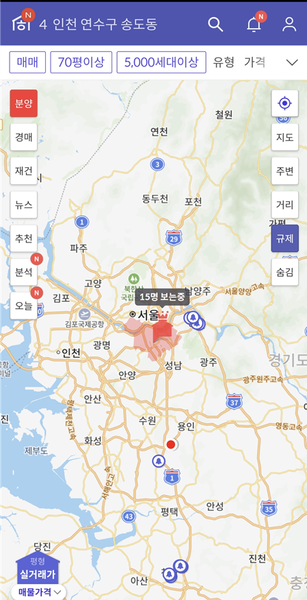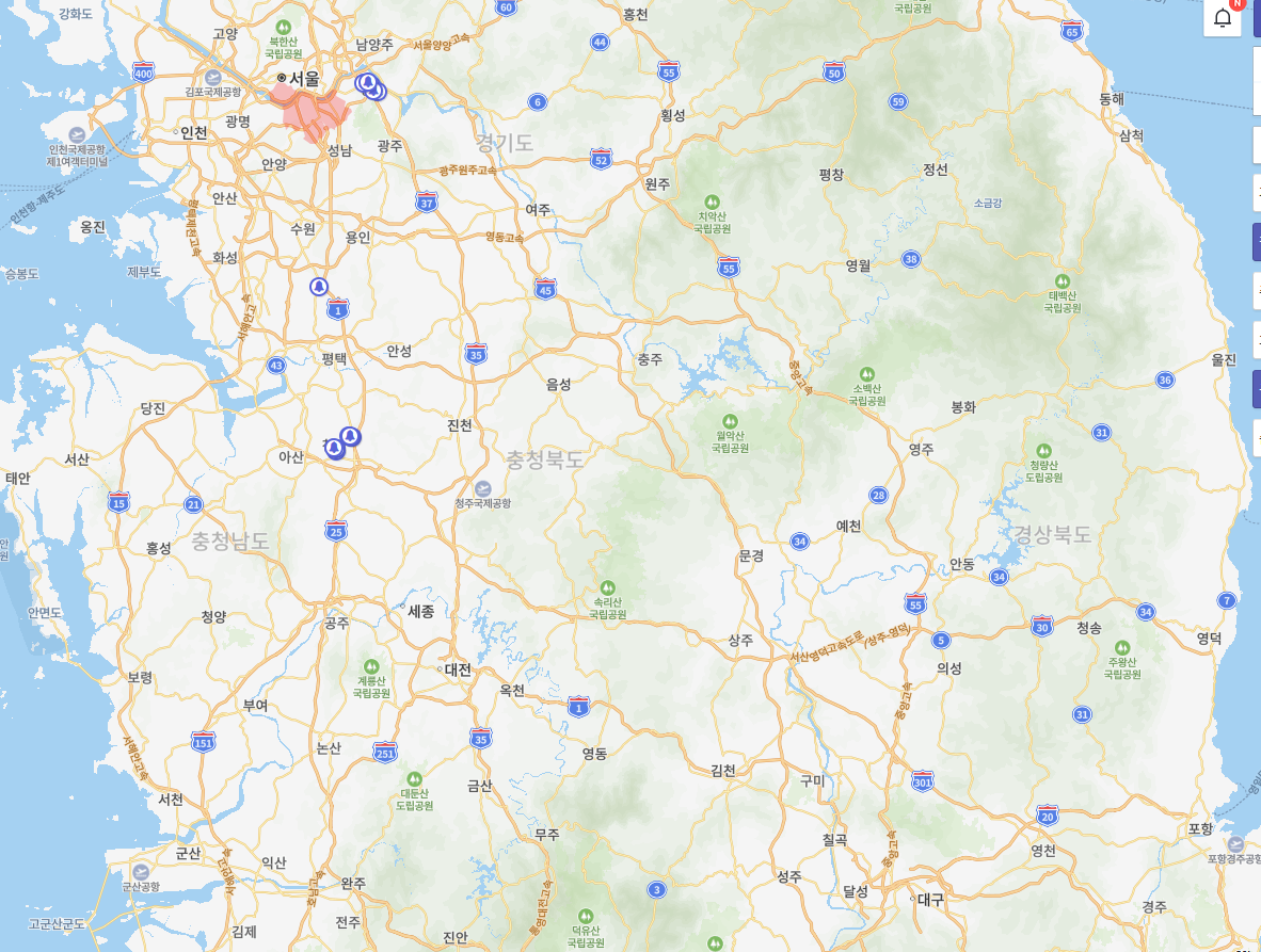전국으로 넓혀봐도 지금은 서울만 나옵니다.