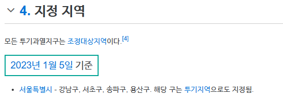 그래서 지금 상태론, 조정지역이 아래와 같이 용산 + 강남 3구에 한하고 있습니다.