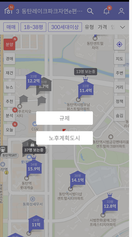 추가로, 부동산 지인에서는 지역마다 찍으면 조정대상지역인지 투과지역인지 등이 표기된다고 하는데