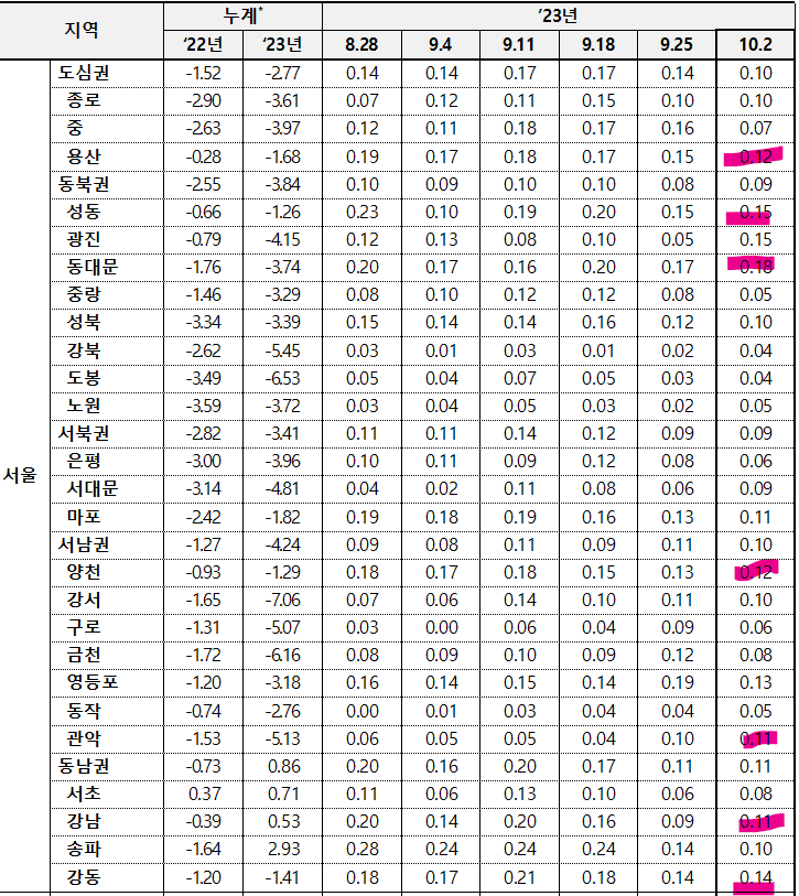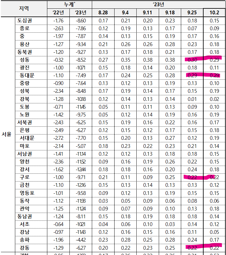 | [금요루틴] 10월 2주차 주간 아파트 매매전세동향 [한국부동산원 기준] (0) | 2023.10.13 |