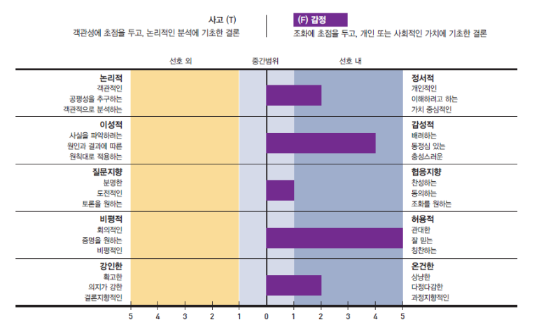 나는 MBTI의 T, F에 있어서 모든 항목이 F성향이다.