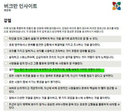 종합 강점을 보니.. 체계적이고 조직적이라고 한다..