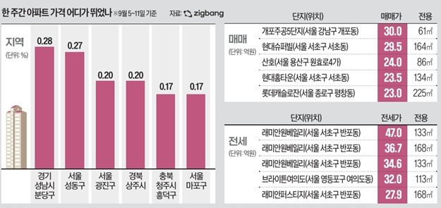 • 성남 분당구, 서울 성동구 아파트값 들썩