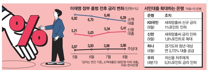 - 李 정부 출범 후 소액대출 금리만 내린 은행