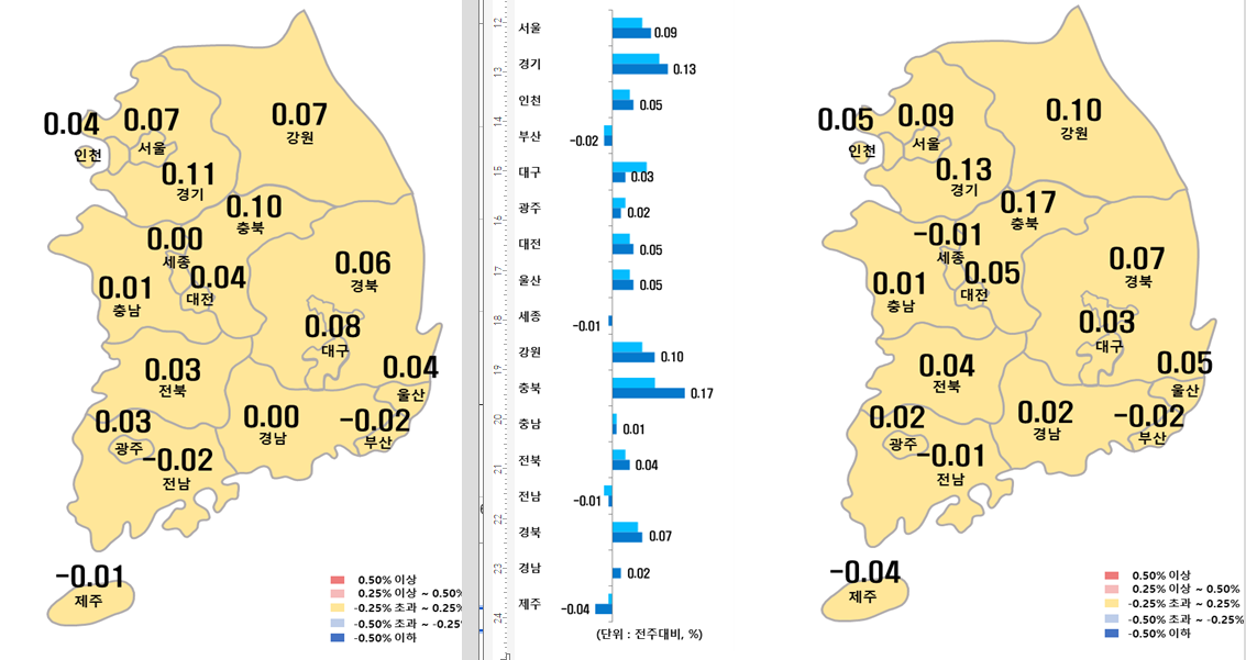[지방 : 0.05%] 5대광역시 0.03% 상승, 세종 0.28% 상승, 8개도 0.05% 상승