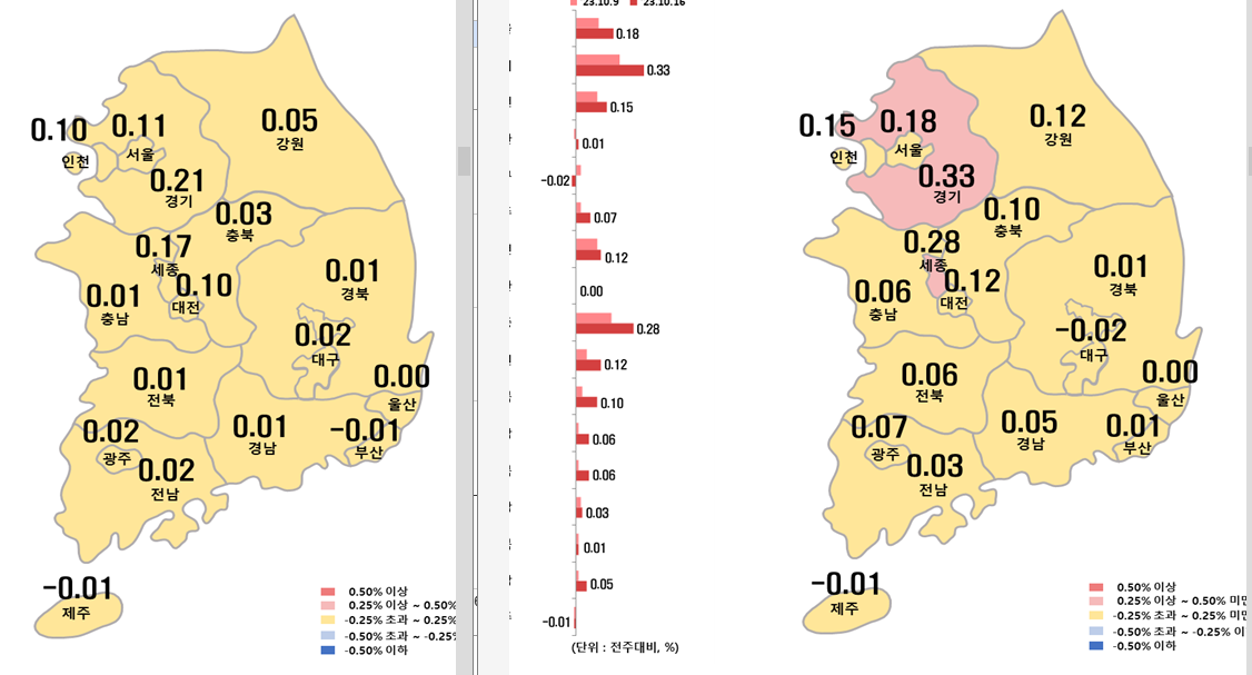 [금요루틴] 10월 3주차 주간 아파트 매매전세동향 [한국부동산원 기준]