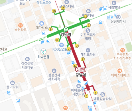 첫번째 루트입니다. 신논현부터 강남여까지의 서쪽 부분을 훑어 볼겁니다.