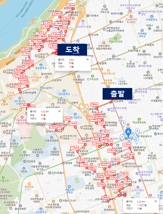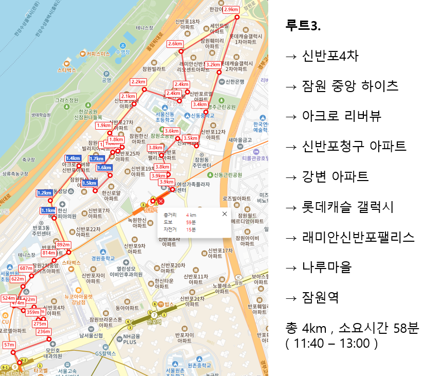 후기 1편을 못보신 분들을 위하여, .. 루트를 다시 한번 .. 오늘의 임장 루트 총 12킬로미터 정도 됩니다. 고터에서 시작하는 루트, 시작해 봅니다 자 이제 세번째 루트!!! 요기 신반포 4차도, 곧 왼
