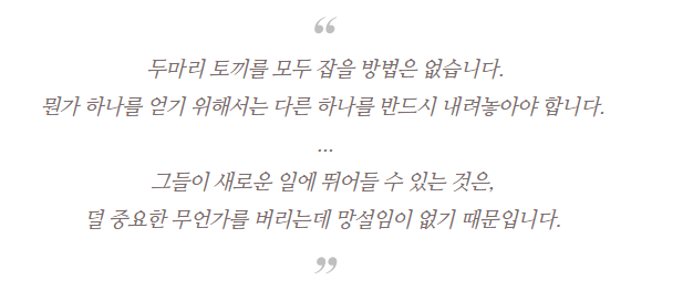 모두 가지고, 새로운 것들을 시작하면, 성장이 쉽지 않다는 것으로도 해석이 되는 부분.