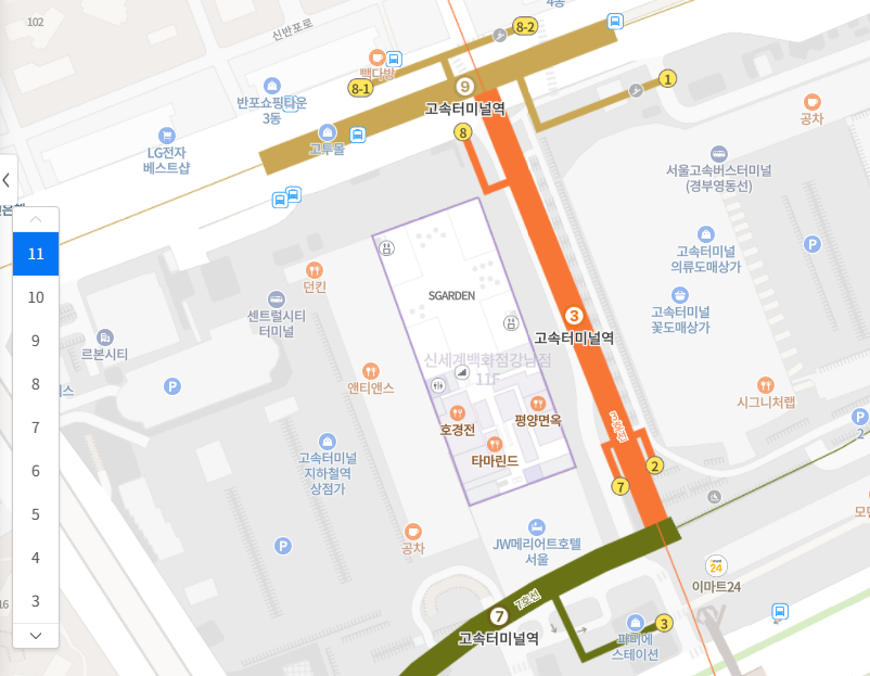 지도 앱을 보다보면, 지상에는 뭐가 있는지 확대해서 보면 보이지만, 지하철 안에 있는 매장등은 잘 볼 수 없죠.
